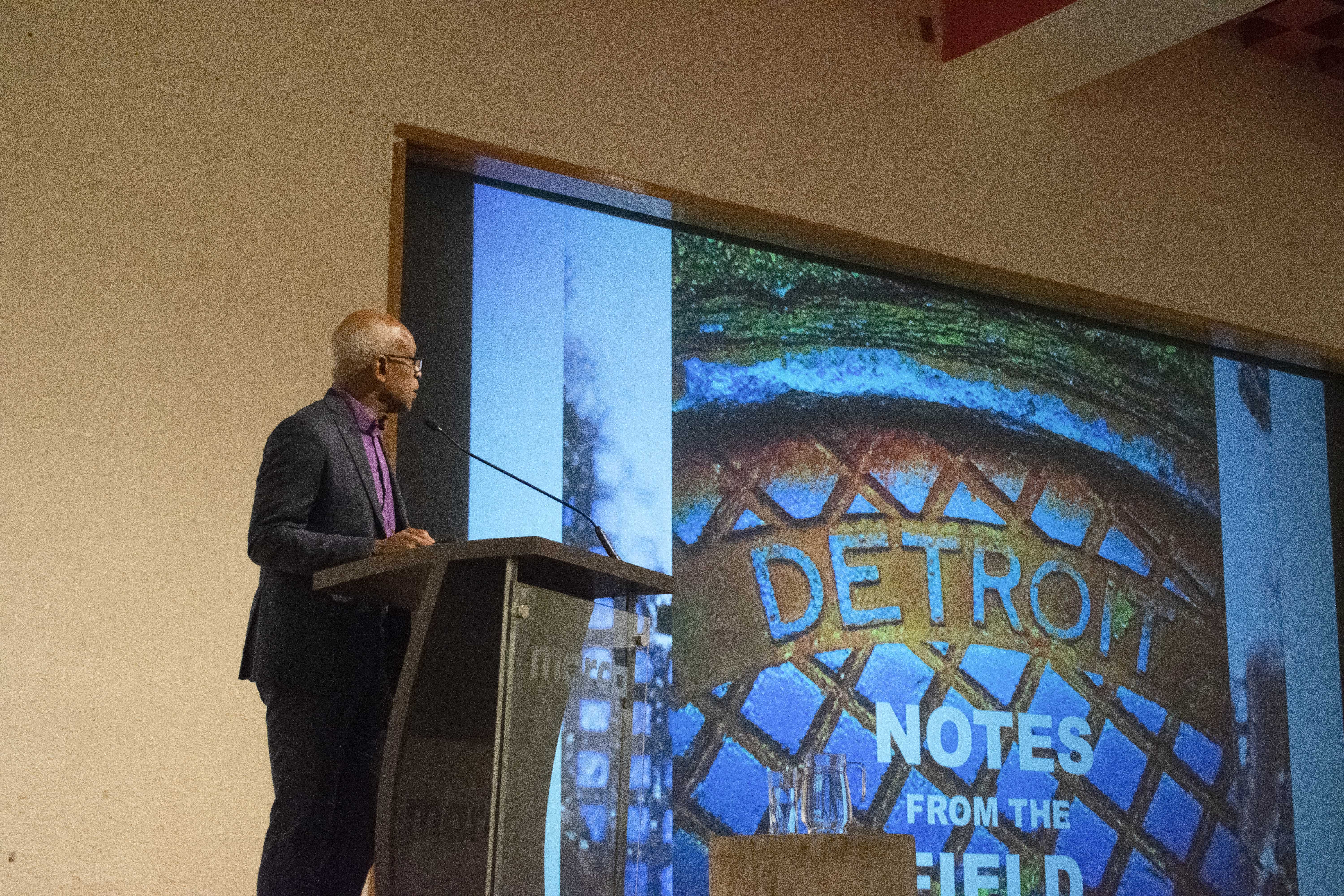 El evento 'La Ciudad Equitativa: Notas de Campo' tuvo lugar el 13 de noviembre de 2023 en el auditorio del Museo MARCO, organizado por el Centro para el Futuro de las Ciudades (CFC). El propósito fue fomentar el encuentro y diálogo entre diversos actores urbanos. Maurice Cox ofreció una conferencia sobre sus experiencias en cargos públicos en ciudades como Chicago, Detroit y Nueva Orleans. Además, se llevó a cabo un panel moderado por Nélida Escobedo con expertos en urbanismo, gobernanza y participación ciudadana. Este evento fue posible gracias a la colaboración entre el CFC, la Escuela de Arquitectura, Arte y Diseño del Tecnológico de Monterrey y el Colegio de Arquitectura del Instituto de Tecnología de Illinois (IIT), como parte de una asociación de tres años entre ambas escuelas a través del Mies Crown Hall Americas Prize (MCHAP) del IIT.